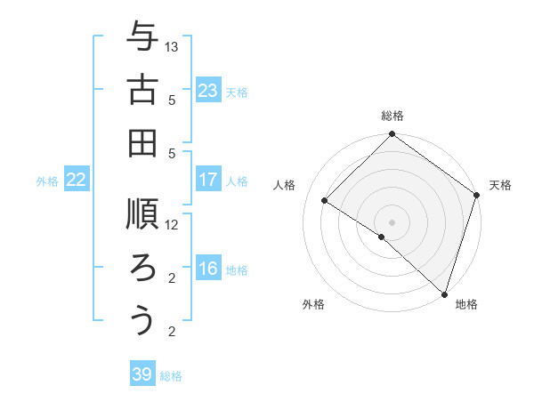 与古田 順ろうさんを姓名の画数から五運を鑑定