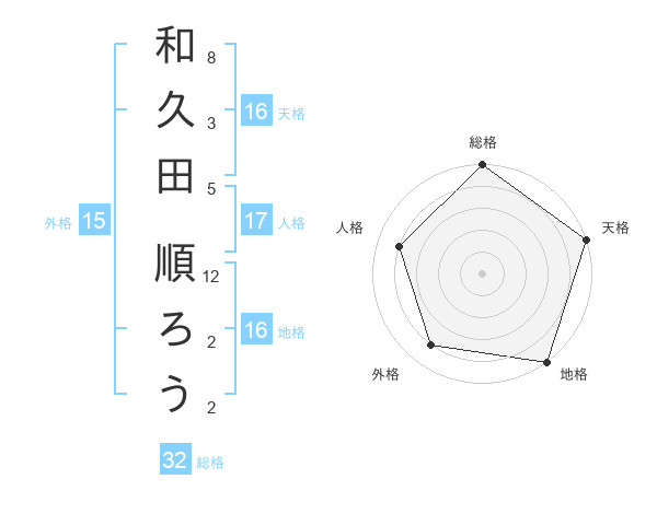 和久田 順ろうさんの地格は16画の5点!