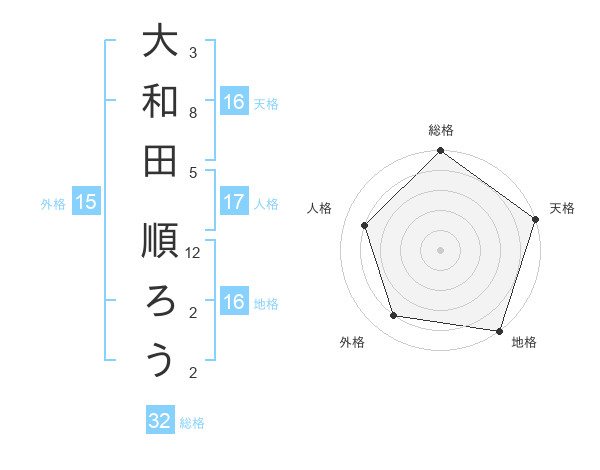 大和田 順ろうさんを姓名の画数から五運を鑑定