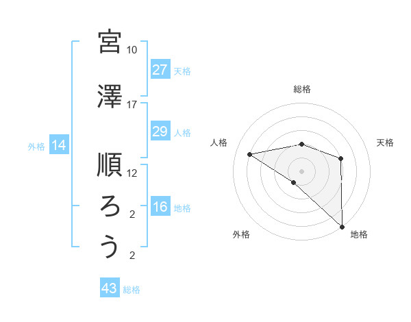宮澤 順ろうさんを姓名の画数から五運を鑑定