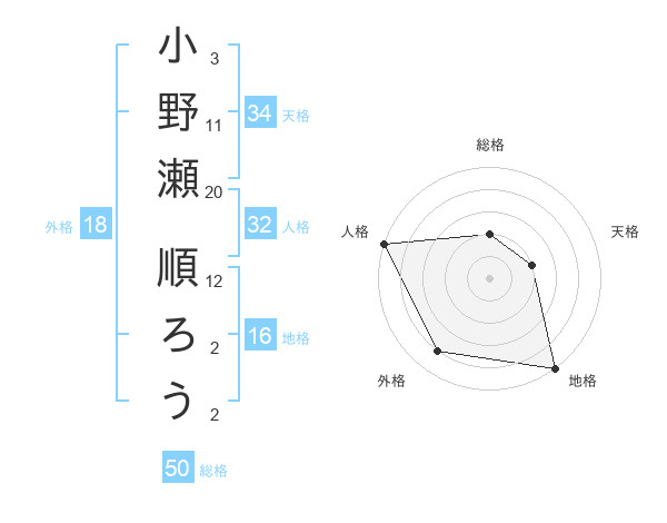 小野瀬 順ろうさんを姓名の画数から五運を鑑定