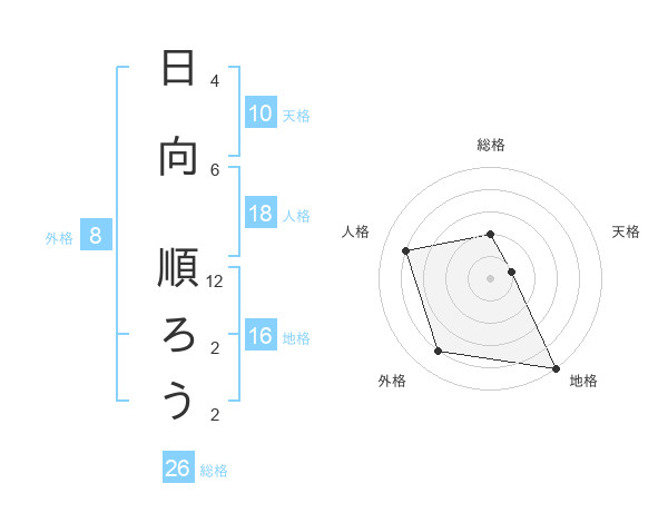 日向 順ろうさんを姓名の画数から五運を鑑定
