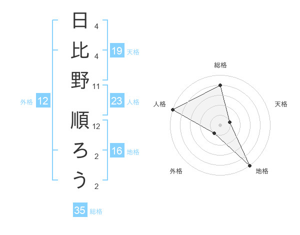 日比野 順ろうさんを姓名の画数から五運を鑑定