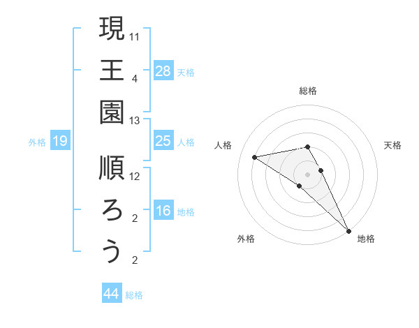 現王園 順ろうさんの総格は44画の2点!