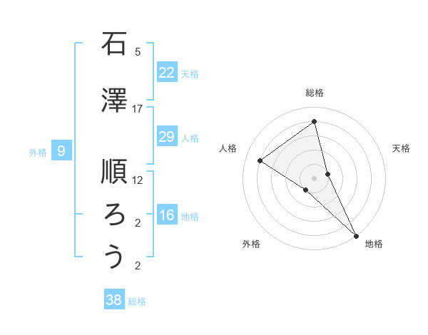 石澤 順ろうさんの地格は16画の5点!