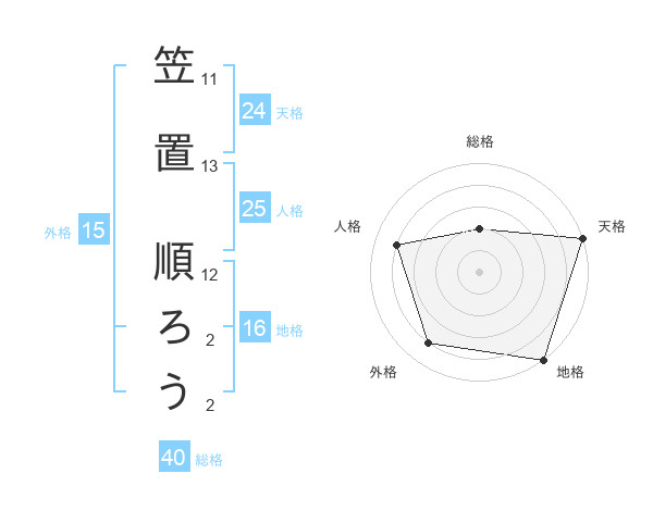 笠置 順ろうさんの外格は15画の4点!
