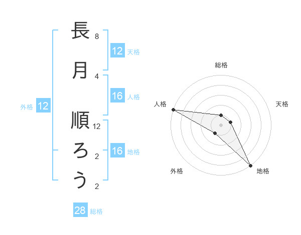 長月 順ろうさんの外格は12画の1点!