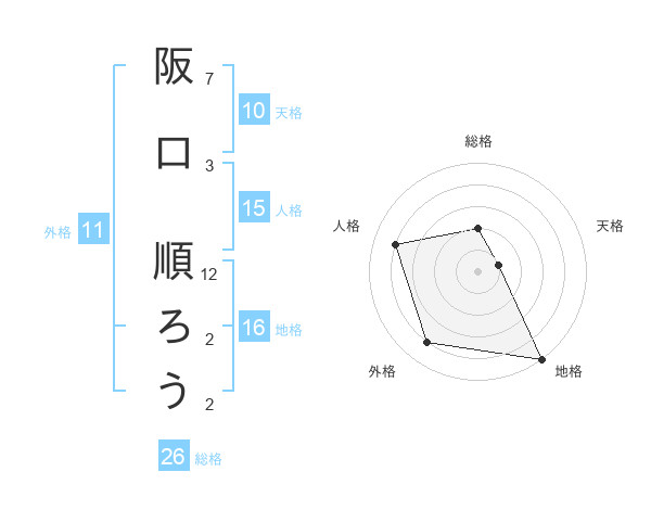 阪口 順ろうさんの地格は16画の5点!