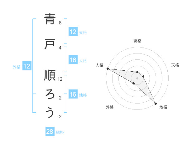 青戸 順ろうさんを姓名の画数から五運を鑑定