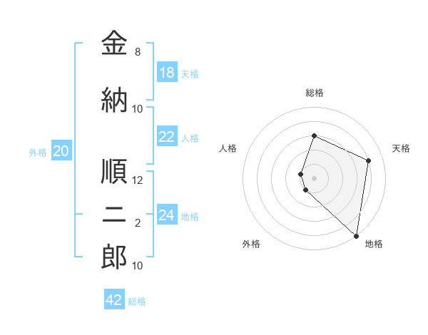 金納 順ニ郎さんを姓名の画数から五運を鑑定