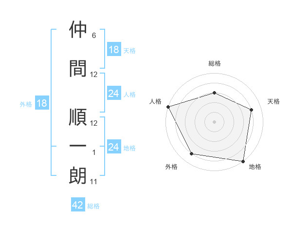仲間 順一朗さんを姓名の画数から五運を鑑定