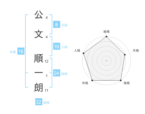 公文 順一朗さんを姓名の画数から五運を鑑定