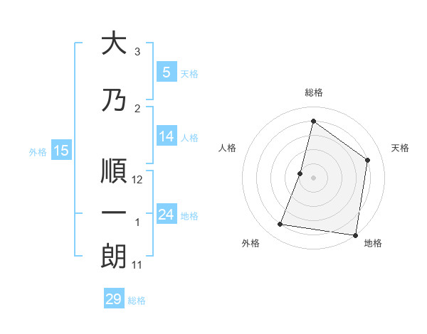 大乃 順一朗さんの地格は24画の5点!
