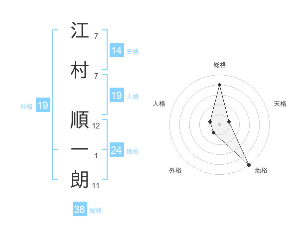 江村 順一朗さんを姓名の画数から五運を鑑定
