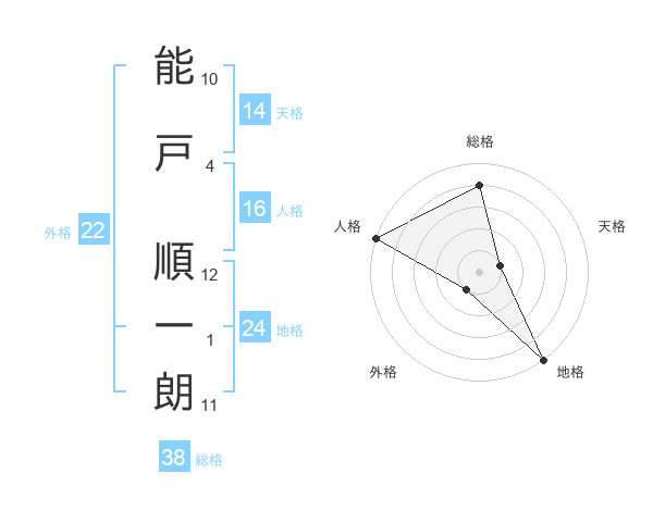 能戸 順一朗さんの総格は38画の4点!