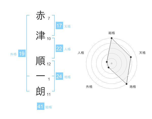 赤津 順一朗さんの総格は41画の5点!