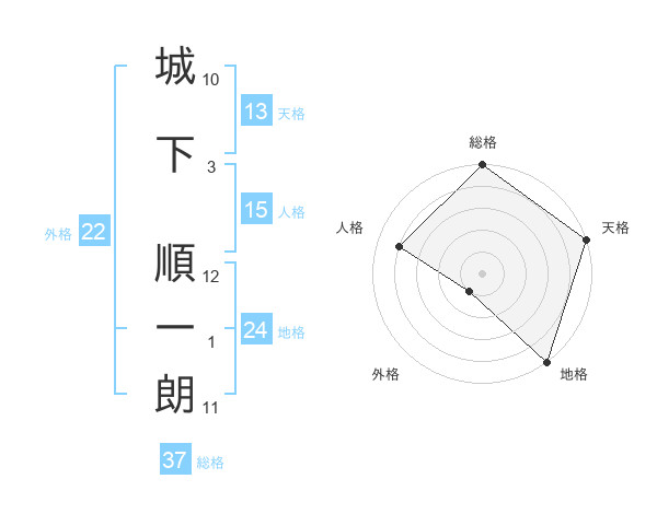 城下 順一朗さんを姓名の画数から五運を鑑定