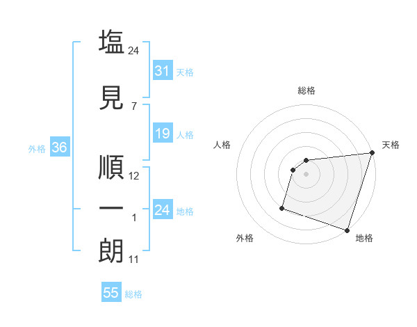 塩見 順一朗さんの天格は31画の5点