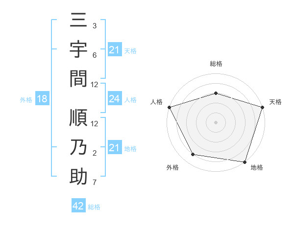 三宇間 順乃助さんを姓名の画数から五運を鑑定