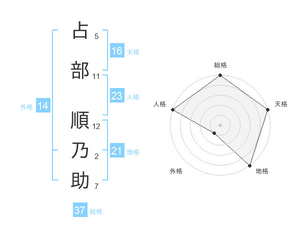 占部 順乃助さんを姓名の画数から五運を鑑定