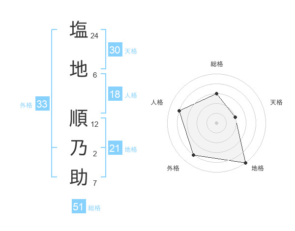 塩地 順乃助さんを姓名の画数から五運を鑑定