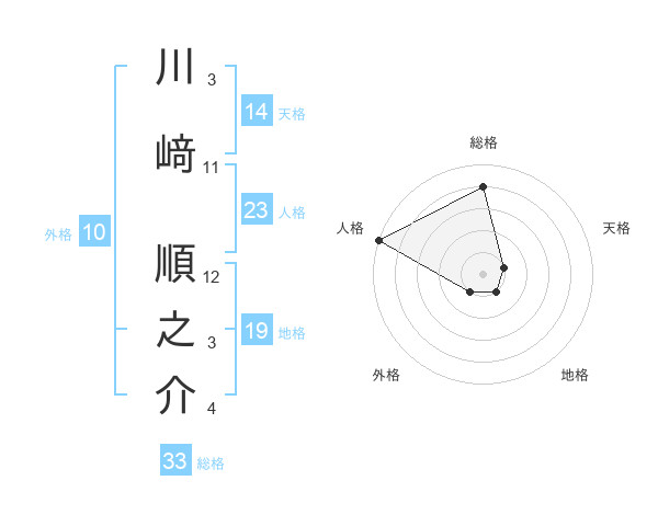 川﨑 順之介さんの総格は33画の4点!