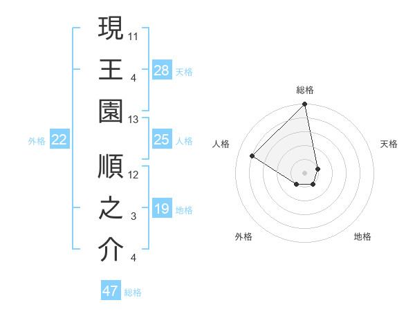 現王園 順之介さんを姓名の画数から五運を鑑定