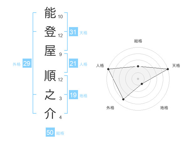 能登屋 順之介さんの総格は50画の2点!