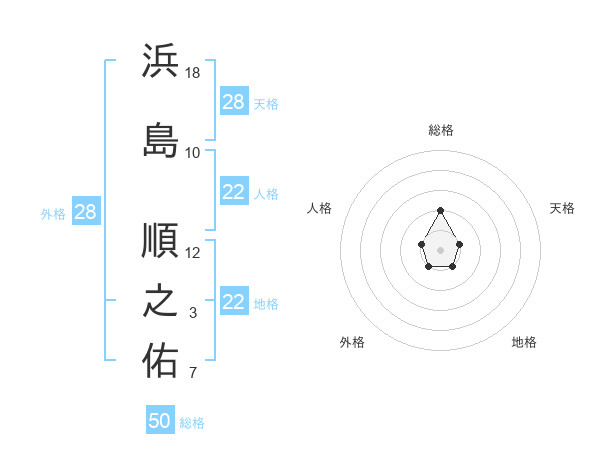 浜島 順之佑さんの総格は50画の2点