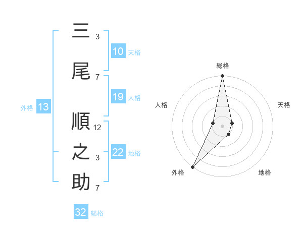 三尾 順之助さんを姓名の画数から五運を鑑定