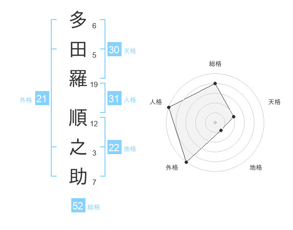 多田羅 順之助さんの総格は52画の4点!