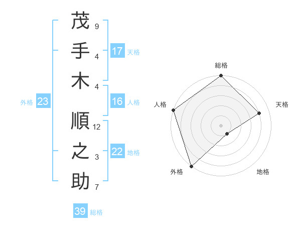 茂手木 順之助さんを姓名の画数から五運を鑑定