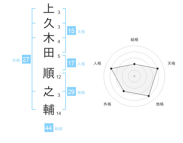 上久木田 順之輔さんを姓名の画数から五運を鑑定