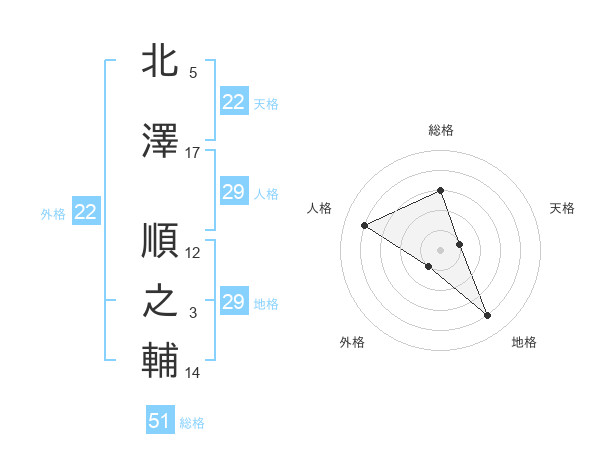 北澤 順之輔さんの総格は51画の3点!