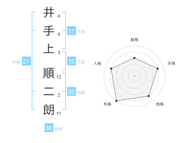 井手上 順二朗さんを姓名の画数から五運を鑑定