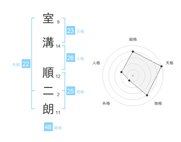 室溝 順二朗さんの外格は22画の1点!