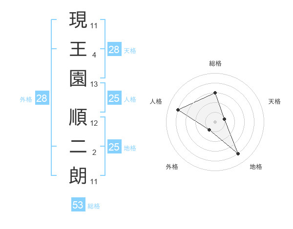 現王園 順二朗さんを姓名の画数から五運を鑑定