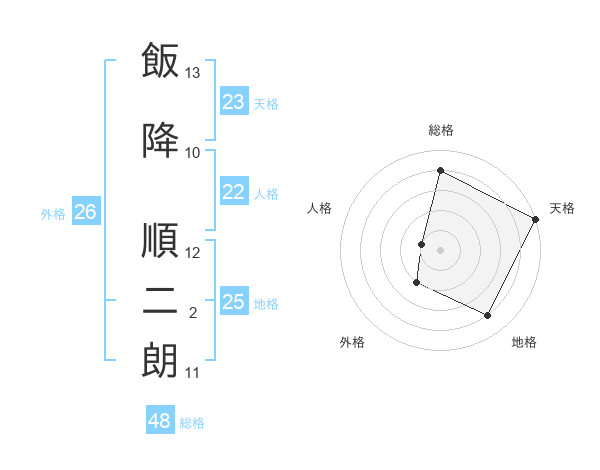 飯降 順二朗さんの総格は48画の4点!