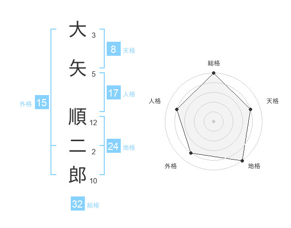 大矢 順二郎さんを姓名の画数から五運を鑑定