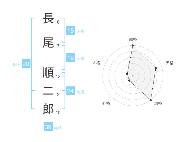 長尾 順二郎さんを姓名の画数から五運を鑑定