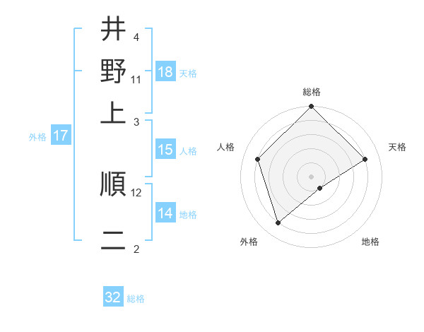 井野上 順二さんの総格は32画の5点!
