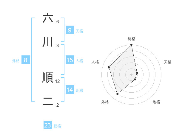 六川 順二さんの総格は23画の5点!