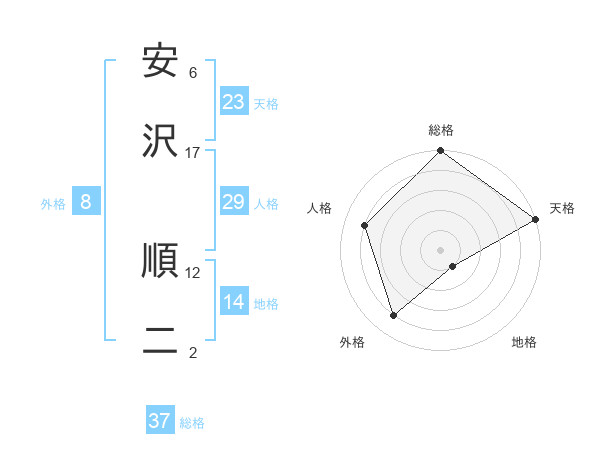 安沢 順二さんの天格は23画の5点!