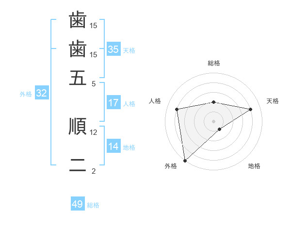 歯歯五 順二さんの外格は32画の5点!