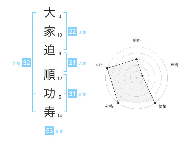 大家迫 順功寿さんを姓名の画数から五運を鑑定