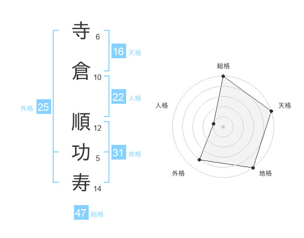 寺倉 順功寿さんの総格は47画の5点!