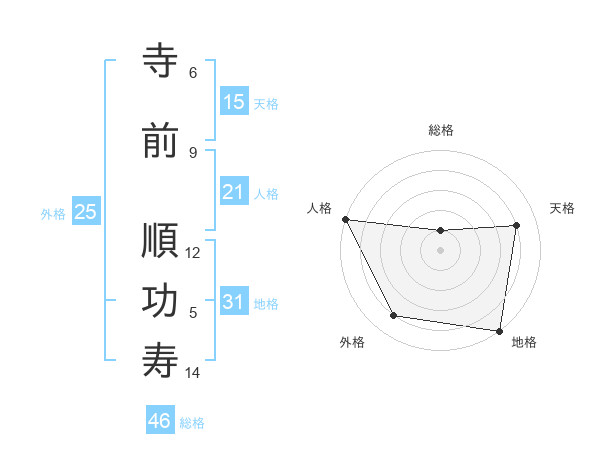 寺前 順功寿さんの地格は31画の5点!