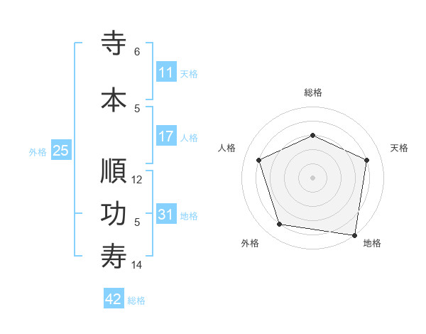 寺本 順功寿さんの地格は31画の5点!