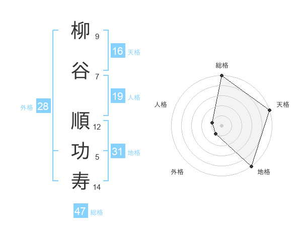柳谷 順功寿さんを姓名の画数から五運を鑑定