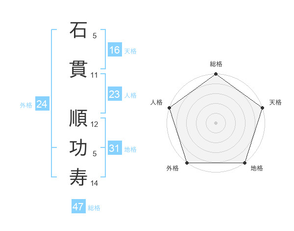 石貫 順功寿さんを姓名の画数から五運を鑑定